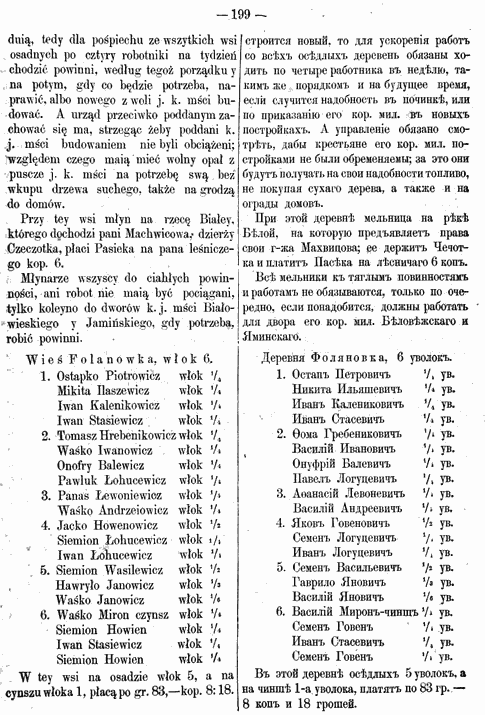 Все мельники къ тяглымъ повинностямъ и работамъ не обязываются, только по очередно, если понадобится, должны работать для двора его кор. мил. Беловежскаго и Яминскаго.