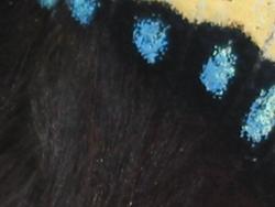 Крылья в размахе 7—9 см, вишнёво-коричневые, снизу чёрные, с желтовато-белой каймой и рядом синих пятен перед ней; на переднем крае крыльев по 2 крупных желтовато-белых пятна. Распространена в умеренном поясе Северного полушария. Встречается с конца июля до осени в лиственных (главным образом берёзовых) лесах, яйца откладывает весной, после зимовки. Гусеницы черные, в мелких жёлтых точках, на спине ряд красных пятен; покрыты ветвистыми шиловидными выростами; питаются листьями берёз, ив, реже других деревьев.